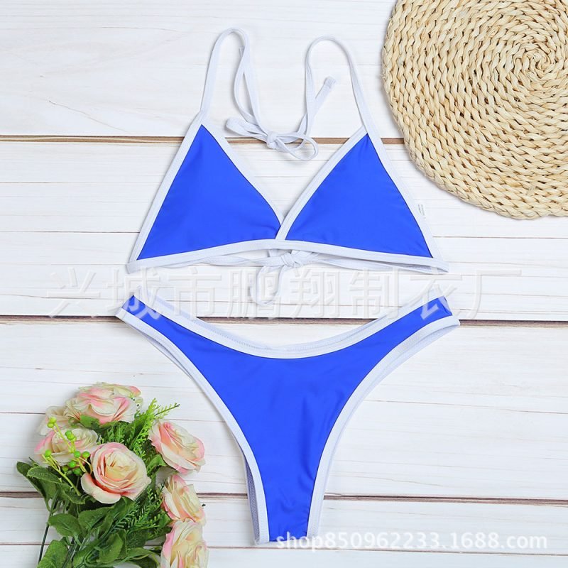Sexy Metal Three-Ring Bikini Cross-Border Solid Color Printed Tie-Separate Swimsuit for Women