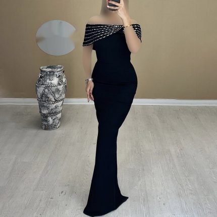 Off-shoulder Handmade Diamond Strip Dress Evening Dress