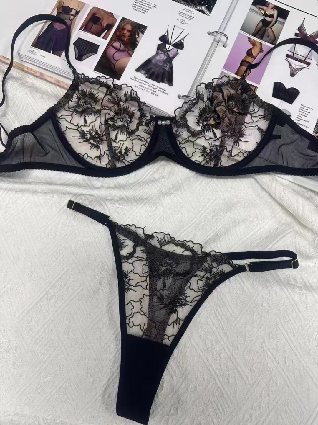 Be the first to review “Sexy Lace Underwear Ultra-thin Transparent Heavy Embroidery Tulle Anti-Drop Bra Set” Cancel reply