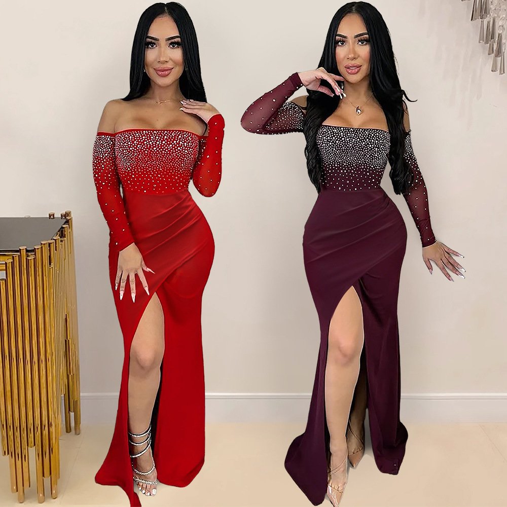 Be the first to review “Solid Color Long Dress with High Slit and Rhinestone Embellished Strapless Design for Women” Cancel reply