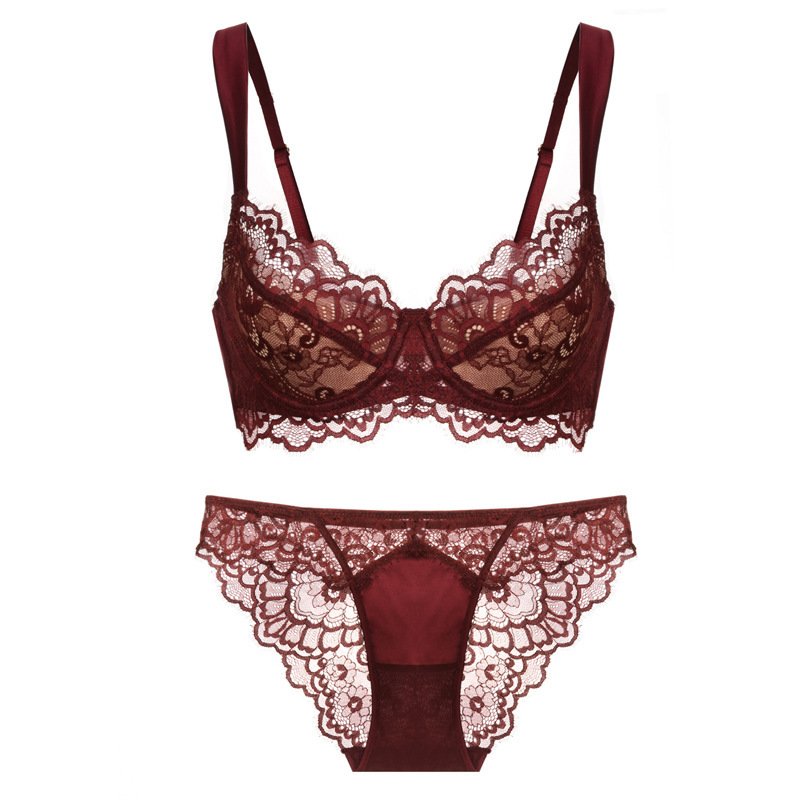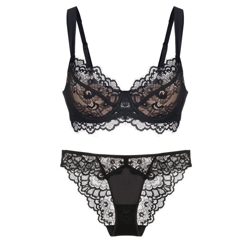 Women’s Sexy Thin Cotton Eyelash Lace Bra Large Chest Minimizer Anti-Sagging Plus Size Lingerie Set